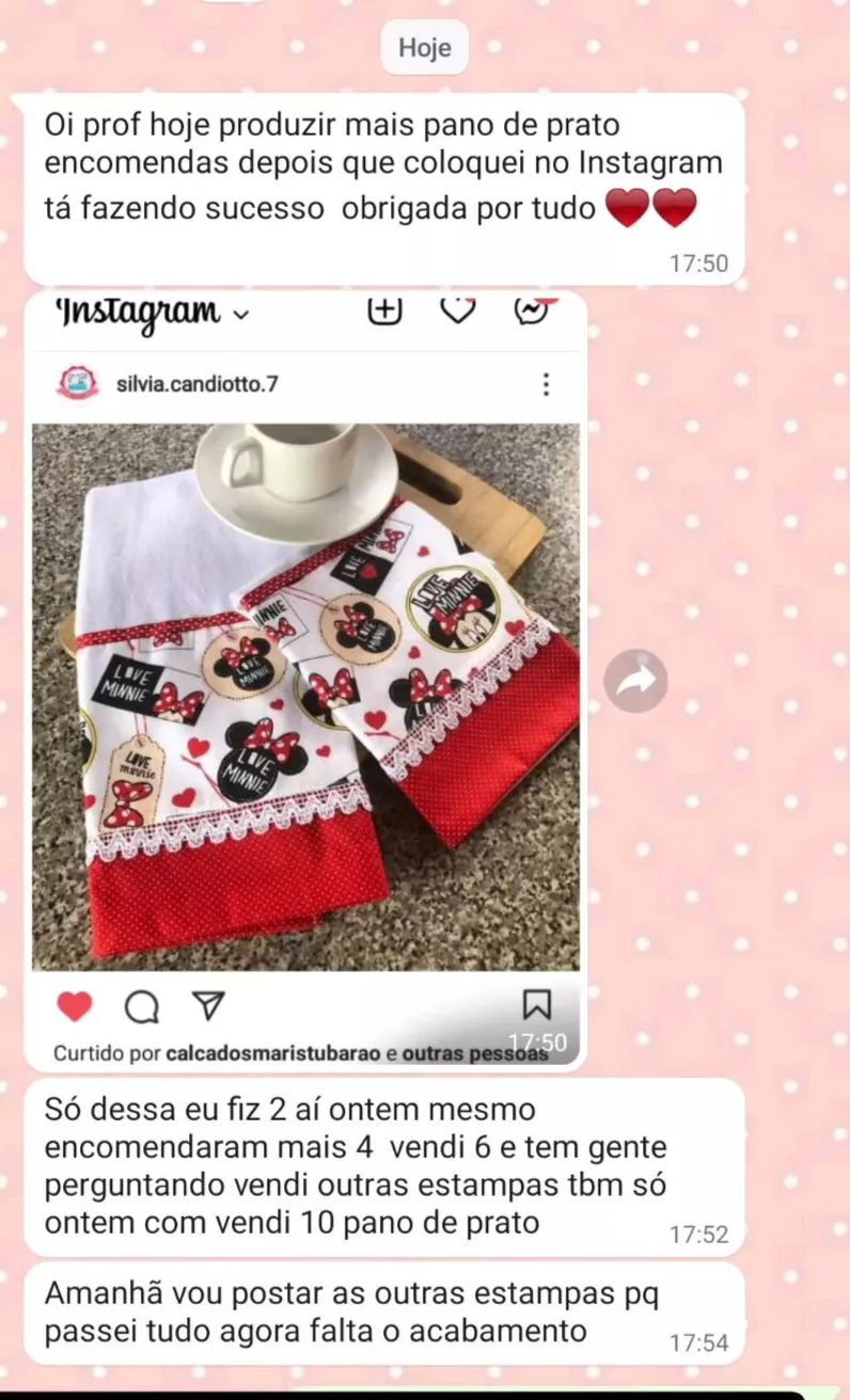 Assista às aulas no seu tempo, tire suas dúvidas comigo sempre que precisar e aplique as mesmas técnicas em dezenas de peças e estampas.